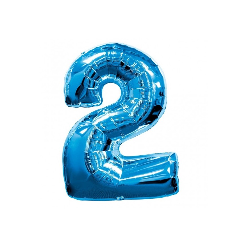 Blue "Super Shape" metallic Mylar balloon that will decorate and indicate with style the number 2!