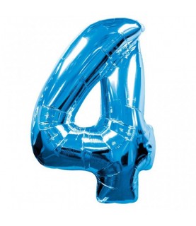 Blue "Super Shape" metallic Mylar balloon that will decorate and indicate with style the number 4!