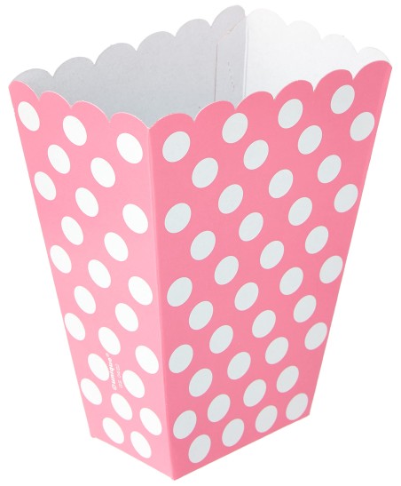 Each package contains 8 scalloped treat boxes. Wonderful to fill with all sorts of treats, candies, popcorn at your parties!