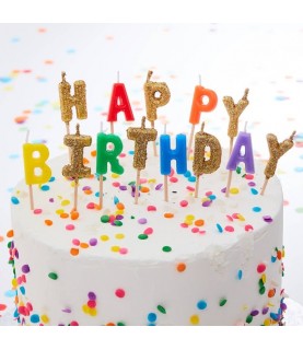 Add something special to your next birthday cake with these fun gold glitter and multi coloured Happy Birthday Candles! Perfect for people of all ages!
