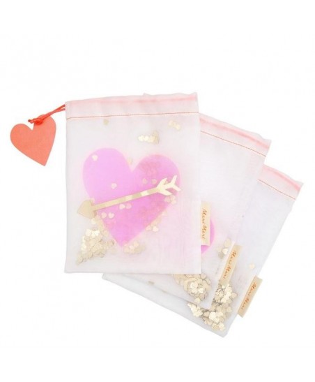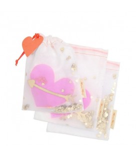 Make Valentine's Day or any gift even more special by presenting them in these beautiful Meri Meri heart sequin shaker bags. Made from layered fine net fabric for a really gorgeous effect. Comes with tissue paper to use as gift wrapping.