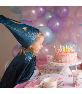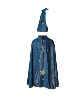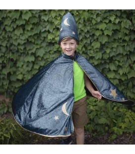 This premium quality Wizard Cape and Hat is sure to cast the magic spell on all around! Soft and comfortable, designed to look like the mysterious midnight sky with stars and moon decals, this is the perfect cape to encourage every day creative play! It will give you power to cast magic spells!