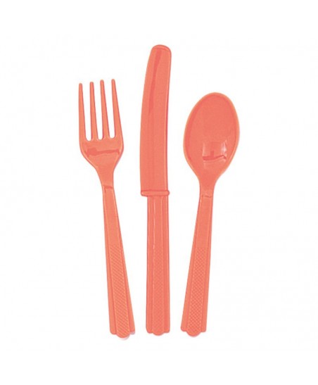 Each package contains 18 coral plastic cutlery: 6 forks, 6 spoons and 6 knives.