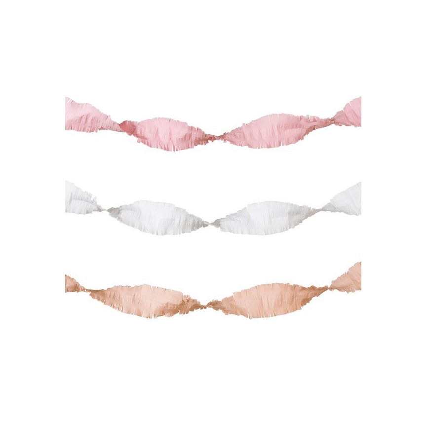 These fantastic pink, peach and white tissue paper streamers are perfect for decorating any special celebration. Simply hang up twist and mix together for maximum effect and instant flair.. This festive party piece is gorgeous when strung up on walls. It will make your special event look and feel ultra-cool.
