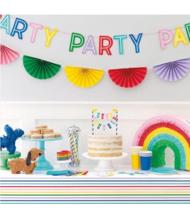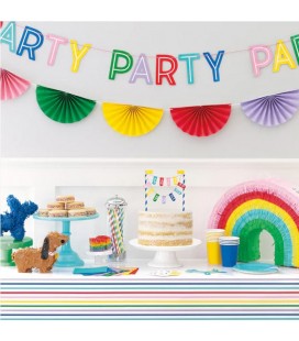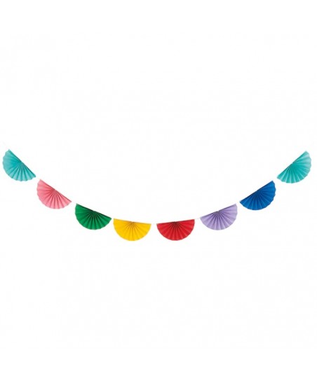 Give your party an instant pop of color with our rainbow Scalloped Paper Fan Garland. It is made of tissue paper and will make an eye-catching addition to any party or special occasion. Hang it behind a party table, as a photo decoration, or in a doorway.