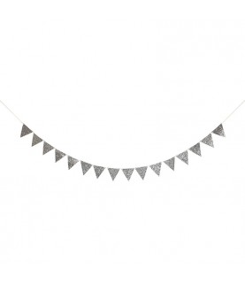 Perfect to decorate a festive scene, this stylish garland has triangle pennants embellished with chunky silver glitter, suspended by a natural finish cotton tape.