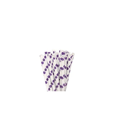 25 Purple Polka Dots Paper Straws
