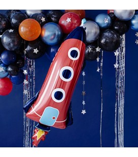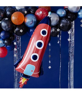 This space rocket shaped mylar balloon makes a wonderful decoration, helping you set the scene at your party.