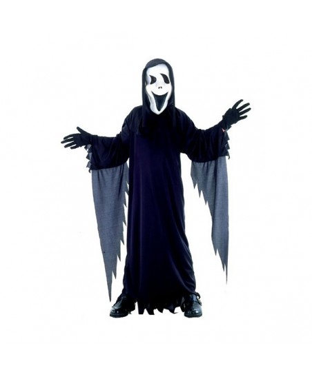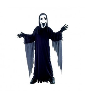 Rise from the grave ad the movie Scream and terrify the neighborhood in this cool costume! It features the white Scream mask with a matching black hooded robe with bat sleeves.
