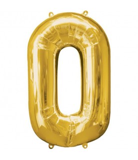 Golden "Super Shape" metallic Mylar balloon that will decorate and indicate with style the number 0!