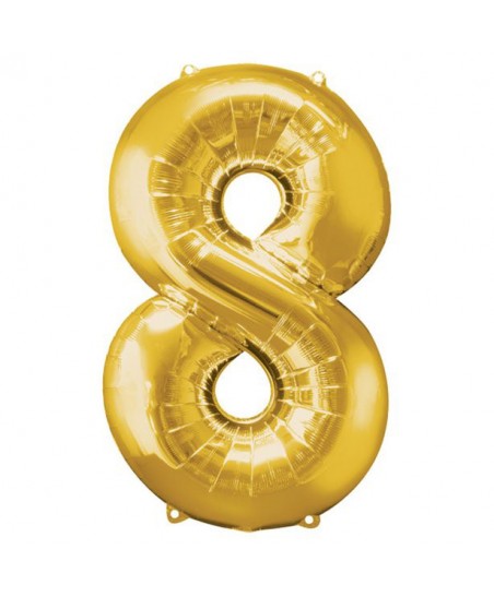 Golden "Super Shape" metallic Mylar balloon that will decorate and indicate with style the number 8!