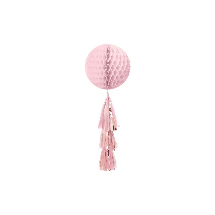 This stunning honeycomb hanging-decoration features fun hanging tassels for extra effect. Perfect for bringing a space to life, creating atmosphere and fun at a celebration. This honeycomb paper tassel ball will add a festive colorful note to your next party!