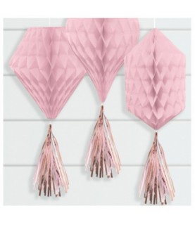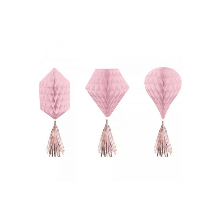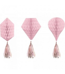 These 3 stunning honeycomb hanging-decorations features fun hanging tassels for extra effect. Perfect for bringing a space to life, creating atmosphere and fun at a celebration. They will add a festive colorful note to your next party!