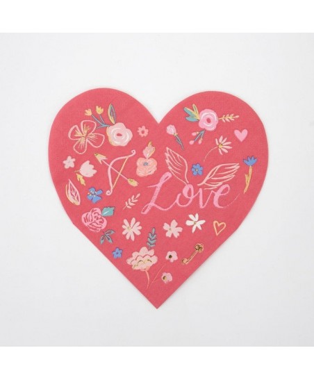Add a lovely, colorful touch to your table setting with these beautiful heart-shaped napkins from Meri Meri. They feature wonderful illustrations relating to love, including flowers and cupid's bow. They are perfect for a Valentine's Day meal, or any special romantic celebration like anniversaries, engagements and weddings.