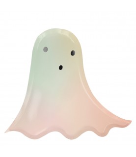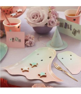These lovely ghost plates will add a touch of color to your Halloween party table. They feature a shaded pastel design in mint, peach, and pink, and the eyes and mouth are made of glimmering silver foil. These plates also look amazing as decorations too!