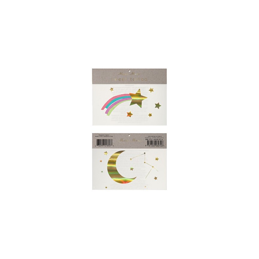 2 temporary tattos from Meri Meri. Cool and design for small and big kids alike! Sticks easily in 30 seconds, lasts a long time and comes off with soap!