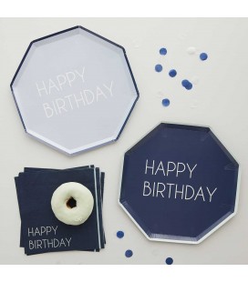 Navy & Blue Happy Birthday Paper Plates