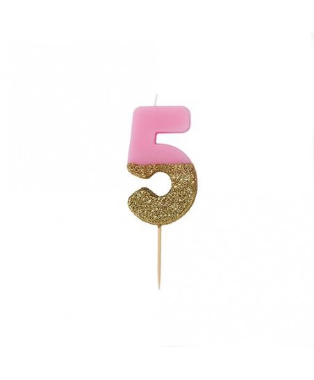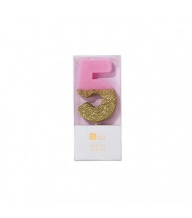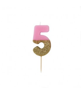 Number 5 Pink Glitter Candle