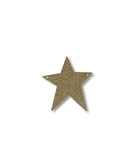 Each sparkly gold glitter character is pre-drilled with two holes to simply thread on ribbon cording or twine (sold separately.