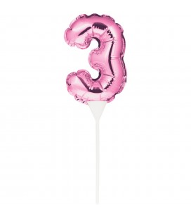 MINI PINK BALLOON NUMBER 3 CAKE TOPPER