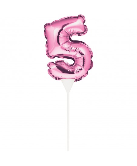 MINI PINK BALLOON NUMBER 5 CAKE TOPPER