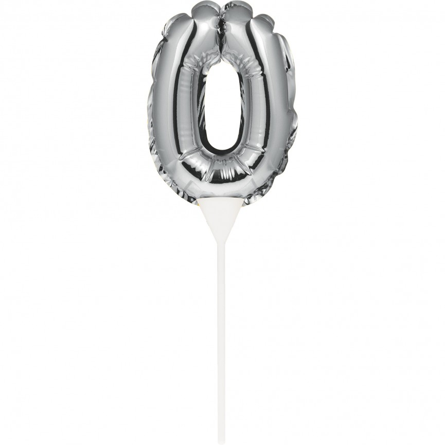 Mini Silver Balloon Number 0 Cake Topper