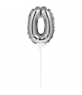 • Mini Silver Balloon Number 0 Cake Topper