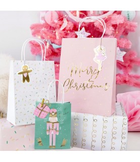 3 Christmas gift bags, with different patterns and colors. The set includes 1 piece of each design. And each bag includes a gift tag.