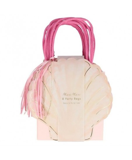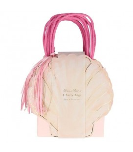 Party guests will be delighted to receive these gorgeous party bags, which you can fill with fabulous treats. They feature a beautiful shell design with shimmering foil on the front and back of the bag, and also a stunning tassel, made from pink satin ribbons and gold metallic thread.
