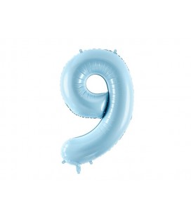 Pastel Blue "Super Shape" Mylar balloon that will decorate and indicate with style the number 9!