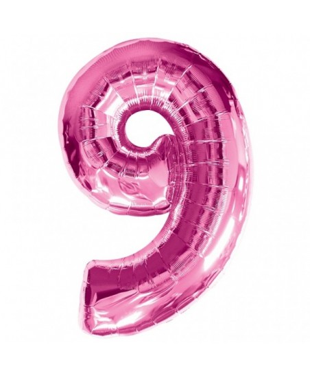 Pink "Super Shape" metallic Mylar balloon that will decorate and indicate with style the number 9!
