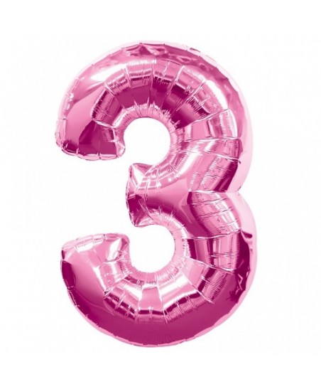 Pink "Super Shape" metallic Mylar balloon that will decorate and indicate with style the number 3!