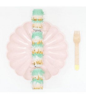 These fabulous fringe crackers, in pretty pastel colours with tissue and gold fringe detail, will make your festive table look so on trend! They each include a joke, hat and a small gift to treasure. These crackers will make Christmas dinner go out with a bang !