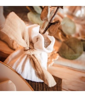 These cotton gauze pouches with white ribbon are perfect for wrapping and presenting small memorable gifts to your guests. They are the ultimate in styling while adding an elegant touch to your decoration. They are versatile, and can be reused after for almost anything.