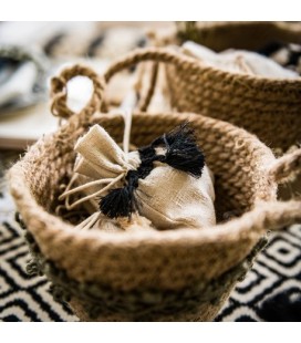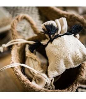 These linen pouches embellished with black pompoms are perfect for wrapping and presenting small memorable gifts to your guests. They are the ultimate in styling while adding an elegant touch to your decoration. They are versatile, and can be reused after for almost anything.