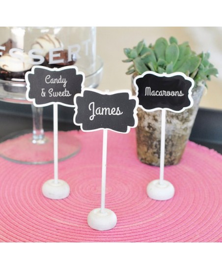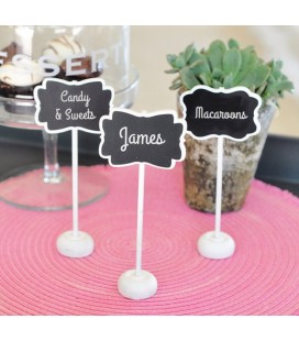 Our framed mini chalkboard place card stand is perfect for labeling anything from wine and cheese to cake and candy! They are the perfect touch of style on your next buffet or dessert table!
