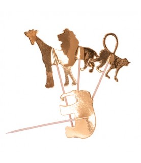 Get into jungle fever ambiance with these trendy party pics featuring gold animals. They are perfect for a jungle, safari, or tropical theme party with an exotic twist! Slide the giraffe, elephant, lion and monkey into your dessert and finger foods to add a festive exotic and tropical touch to your table!