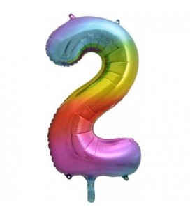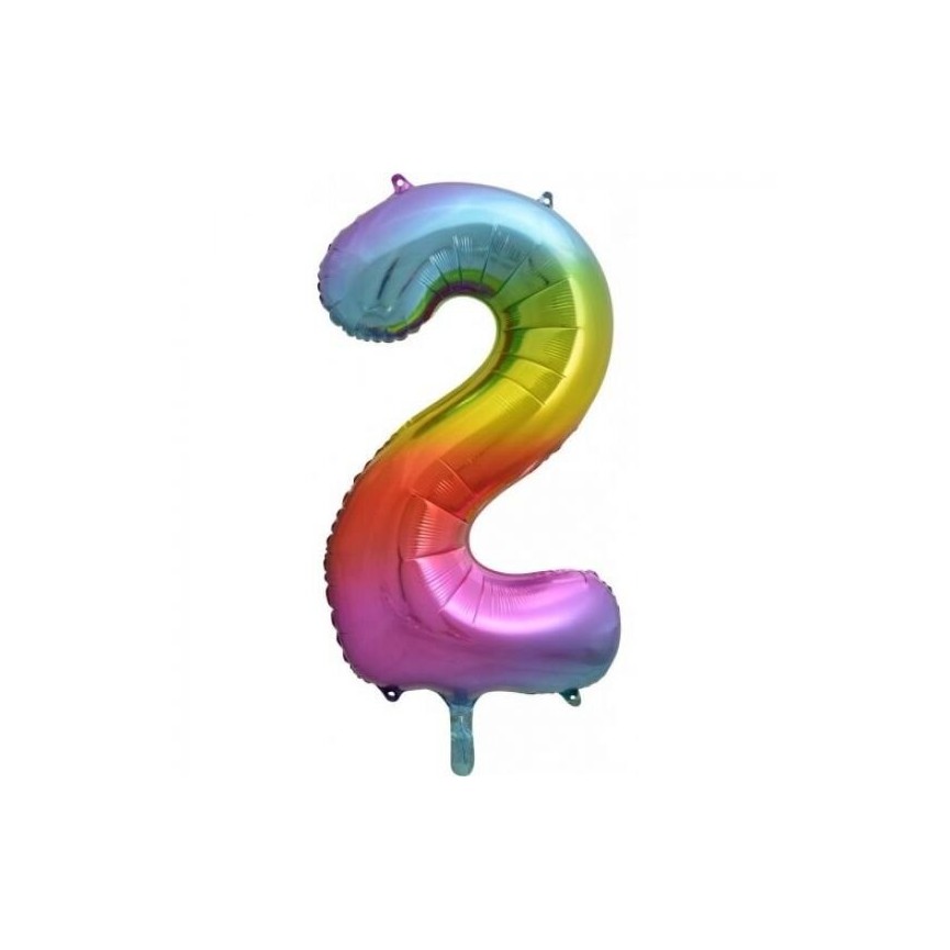 Rainbow "Super Shape" metallic foil balloon that will decorate and indicate with style the number 2 !