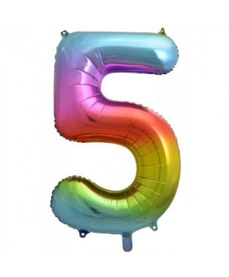 Rainbow "Super Shape" metallic foil balloon that will decorate and indicate with style the number 5 !