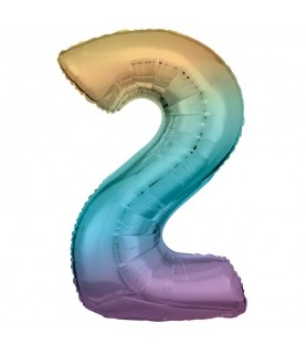 Rainbow "Super Shape" metallic Mylar balloon that will decorate and indicate with style the number 0!