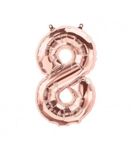Rose Gold "Super Shape" metallic Mylar balloon that will decorate and indicate with style the number 8!
