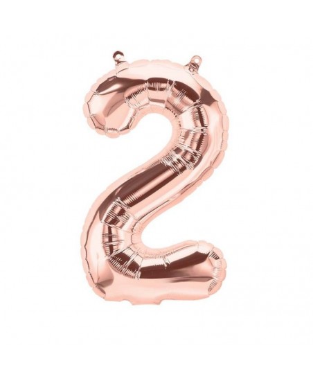 Rose Gold "Super Shape" metallic Mylar balloon that will decorate and indicate with style the number 2!