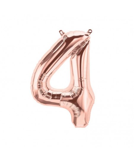 Rose Gold "Super Shape" metallic Mylar balloon that will decorate and indicate with style the number 4!