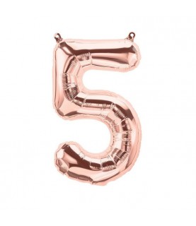 Rose Gold "Super Shape" metallic Mylar balloon that will decorate and indicate with style the number 5!