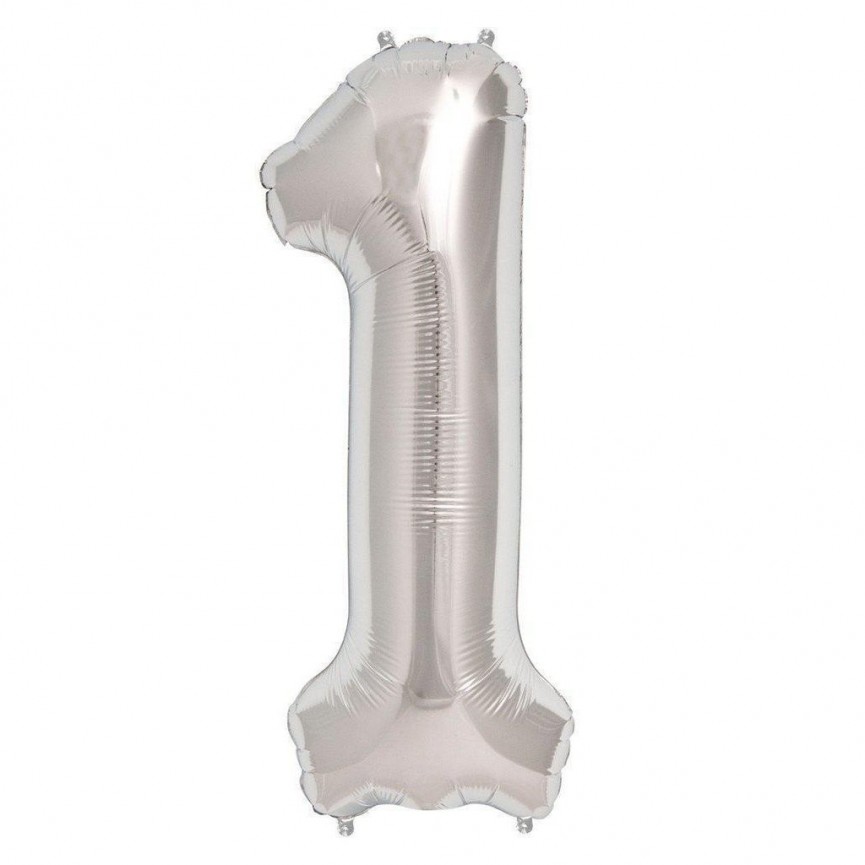 Silver "Super Shape" metallic foil balloon that will decorate and indicate with style the number 1!