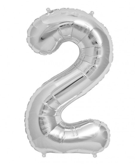 Silver "Super Shape" metallic foil balloon that will decorate and indicate with style the number 2!