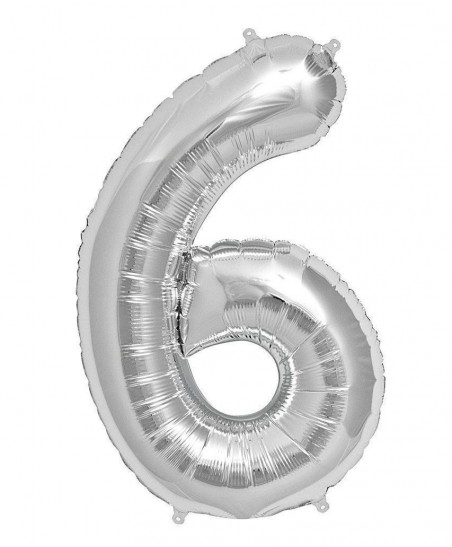 Silver "Super Shape" metallic foil balloon that will decorate and indicate with style the number 6!