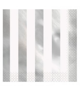 16 SILVER FOIL STRIPE LUNCHEON NAPKINS
