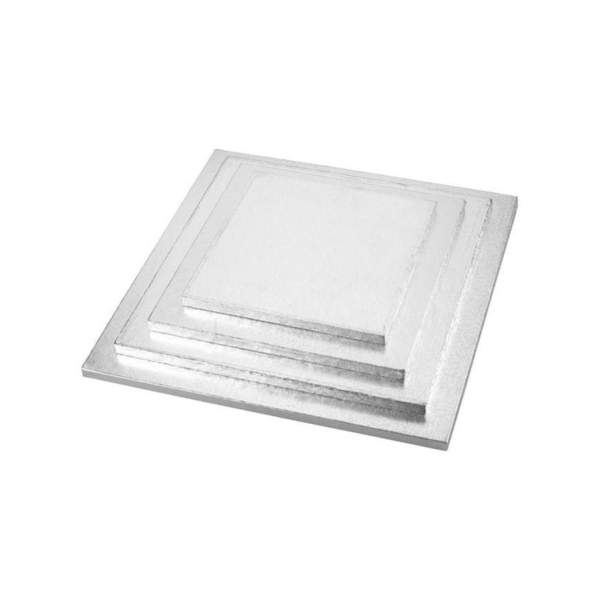 This gorgeous square silver cake board, also called cake drum is all you need to display and serve your cakes. The strong construction and 12mm height will hold all your cakes while providing stability and adding elegance. When used with care it serve for a couple of times.