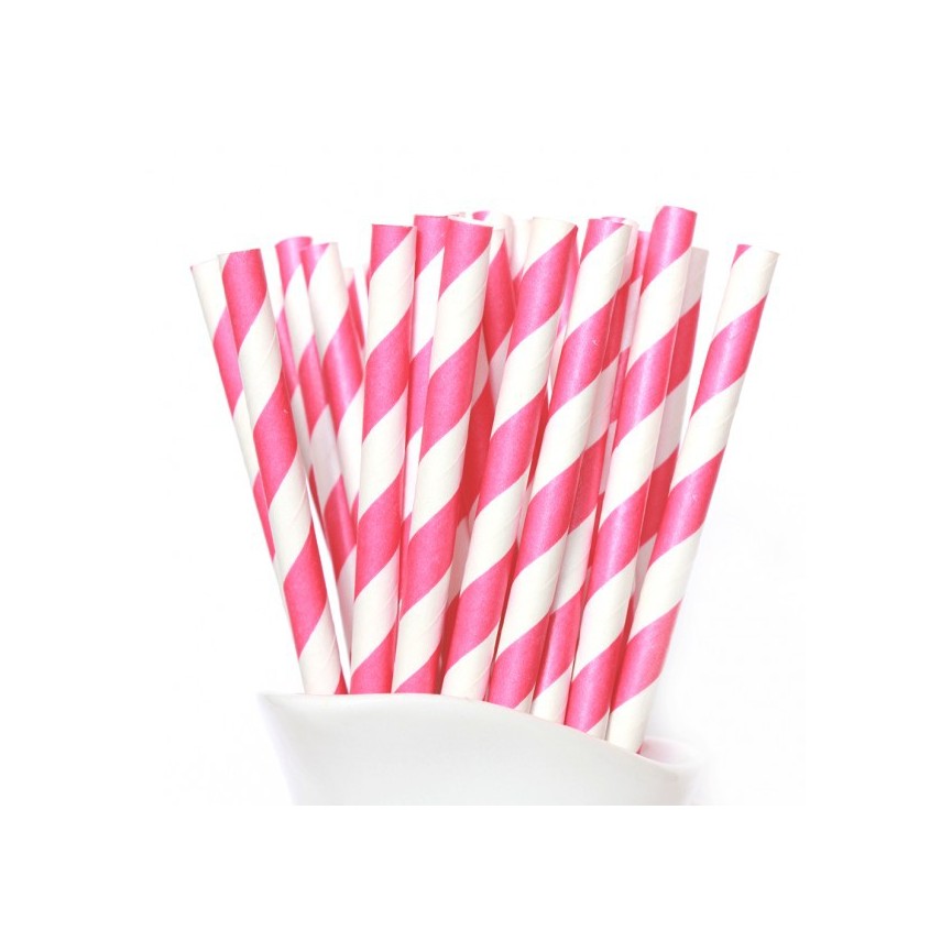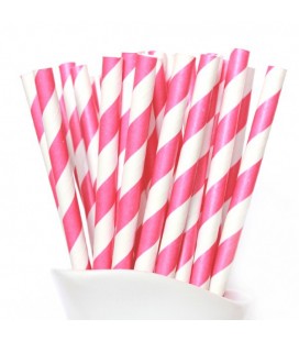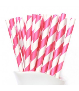 24 Magenta Striped Paper Straws